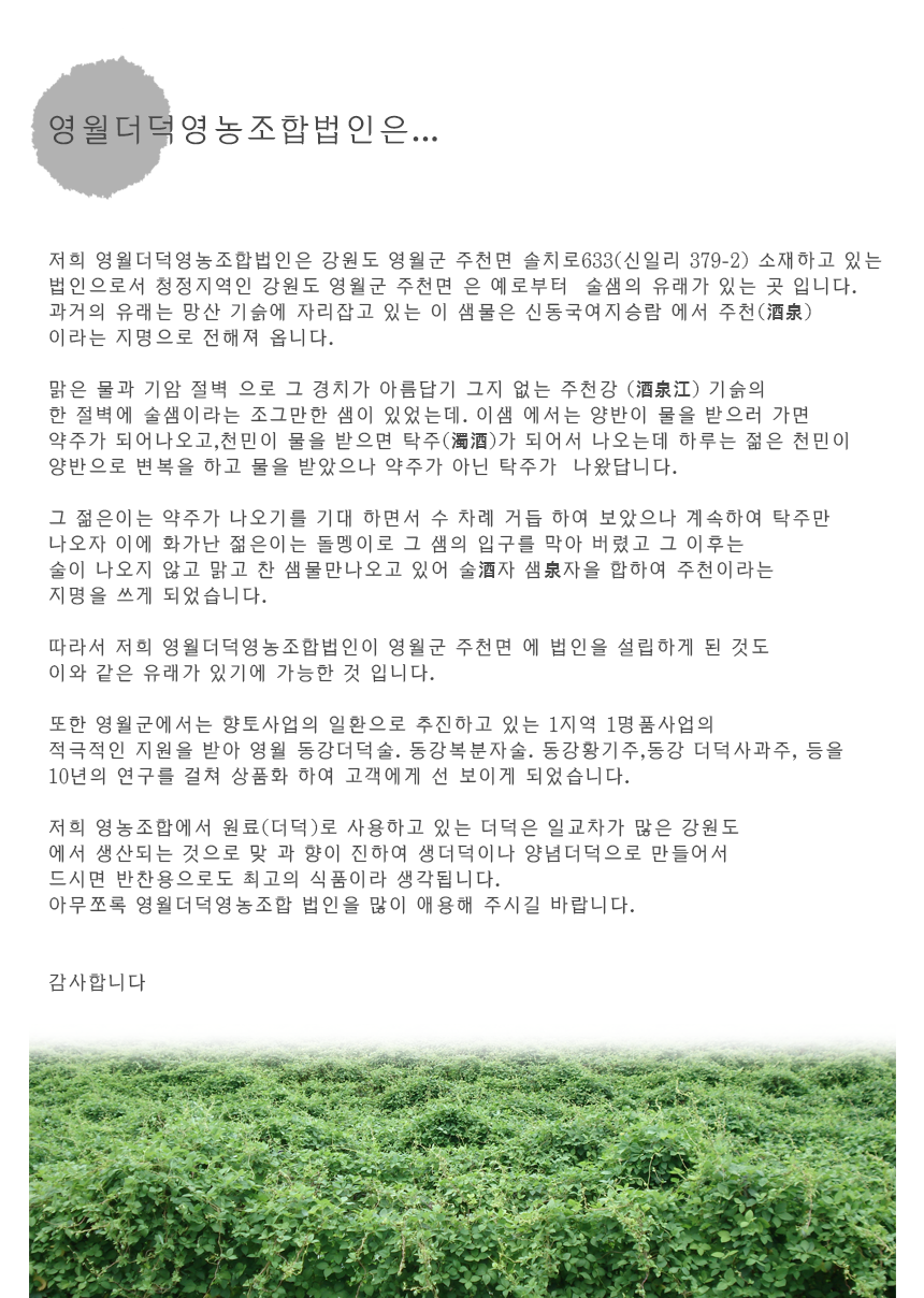 | 주소 : 강원도 영월군 주천면 솔치로 633 신일리379-2